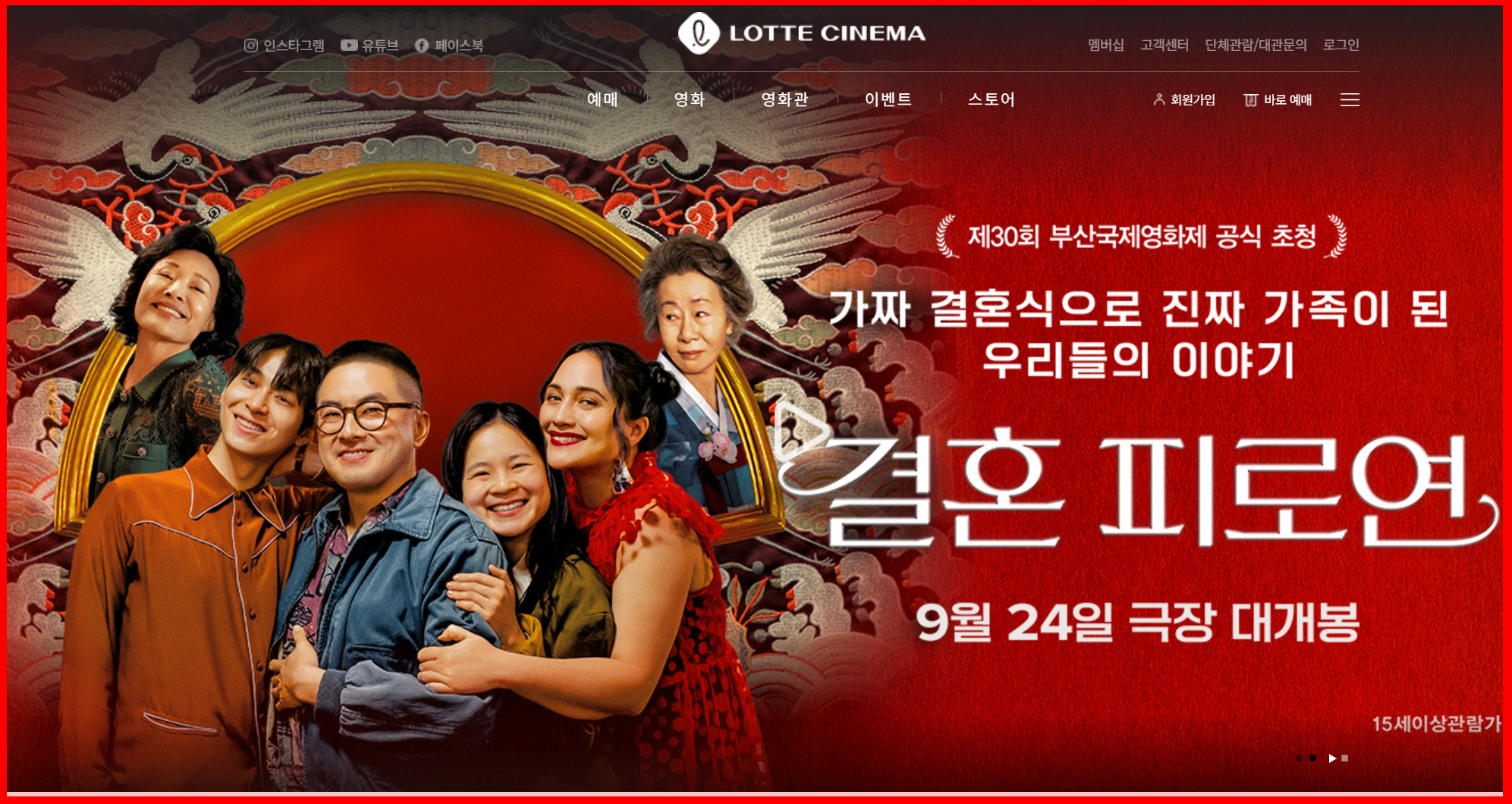 매달 마지막주 수요일은 '문화가 있는 날'입니다. 영화 티켓이 7000원에 제공되기 때문에 할인쿠폰 6000원을 적용하면 1000원에 영화를 관람할 수 있습니다. ott 등 집에서 즐길 수 있는 방법이 많지만 영화관이 주는 특별한 감성과 경험은 영화관에 가야만 느낄 수 있는 듯합니다. 개봉작들을 둘러보시고 영화관에서 부담 없이 즐거운 하루 만들어보세요.