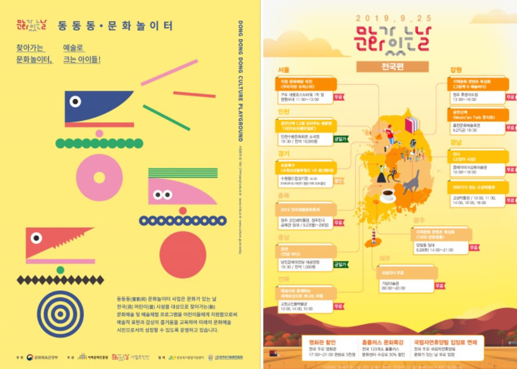 문화가 있는 날은 매달 마지막 수요일에 지정된 날입니다. 국민이 일상에서 문화를 쉽게 접할 수 있도록 문화체육관광부가 주관합니다. 문화가 있는 날, 일명 문날에는 전국 2,000여 개의 문화시설에서 무료 또는 할인 관람 혜택이 제공됩니다. 영화관 뿐만이 아닙니다. 혜택은 영화관, 공연장, 박물관, 미술관 등 다양한 문화 프로그램이 진행됩니다.