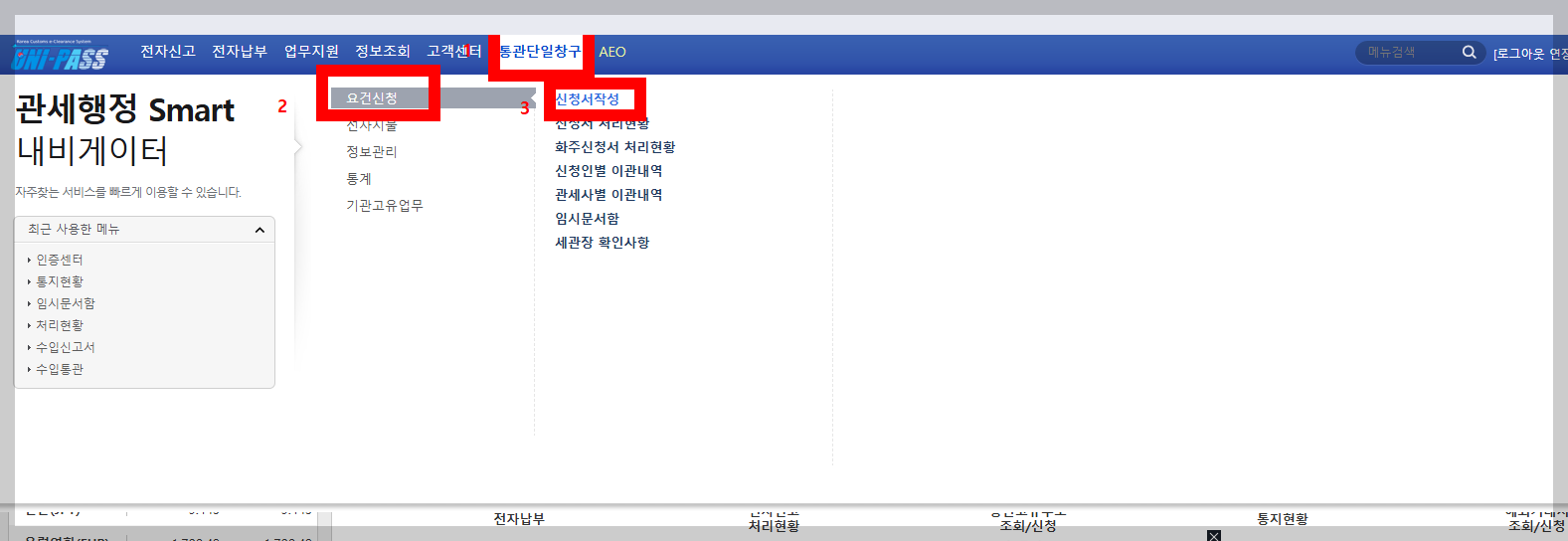 3. 통관단일창구 > 요건신청 > 신청서 작성