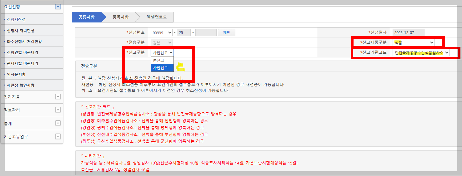 - 신고기관코드: (경인청)인천국제공항수입식품검사소