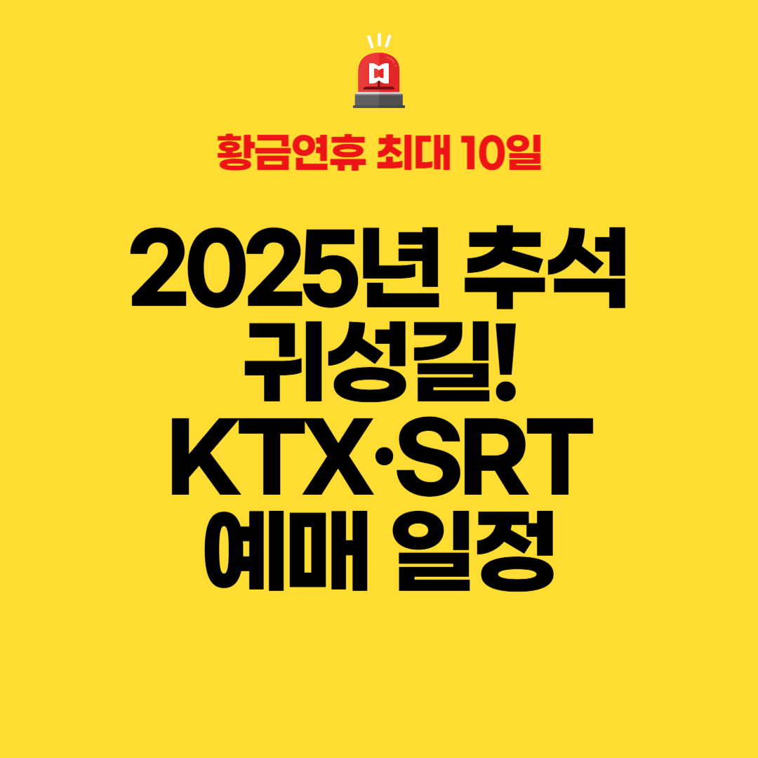 2025년 추석 귀성길! KTX·SRT 예매 일정, 사전 준비, 전략 및 취소표 노리는 법까지 한 번에 정리했습니다. 연휴 최대 10일, 성공 예매 공식을 알려드립니다.